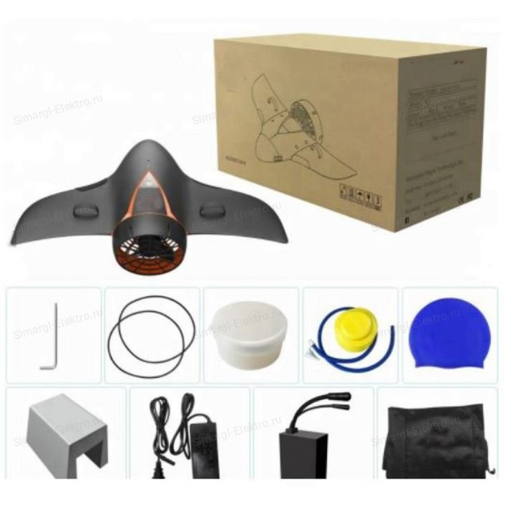 Литиевая батарея на 15 Ah позволяет плавать на одном заряде от 50 до 100 км в зависимости от веса пловца. Аккумулятор заряжается от обычной розетки на 220 Вольт за 3 часа.