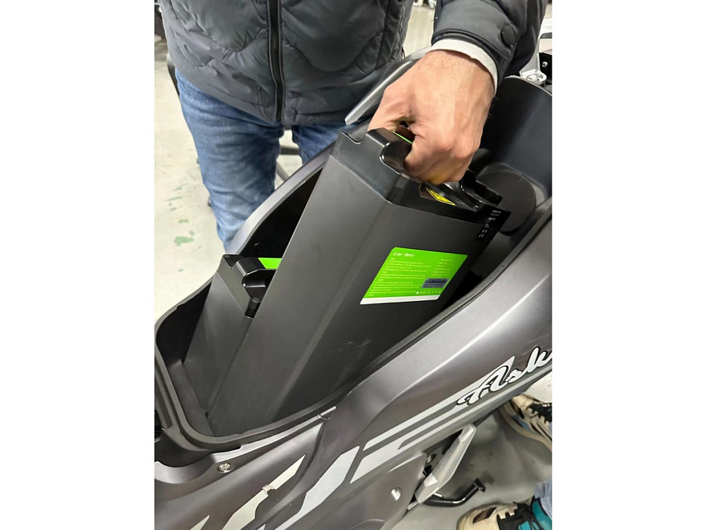 Ответ: Да, оба аккумулятора съемные, их можно заряжать как на скутере, так и отдельно от него от бытовой розетки или зарядной станции.
