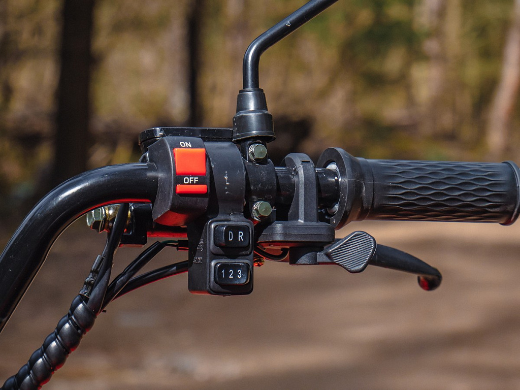 Правая рукоять – переключение между полным и задним приводом, переключение движения вперед/назад, переключатель скоростей, лепесток газа;