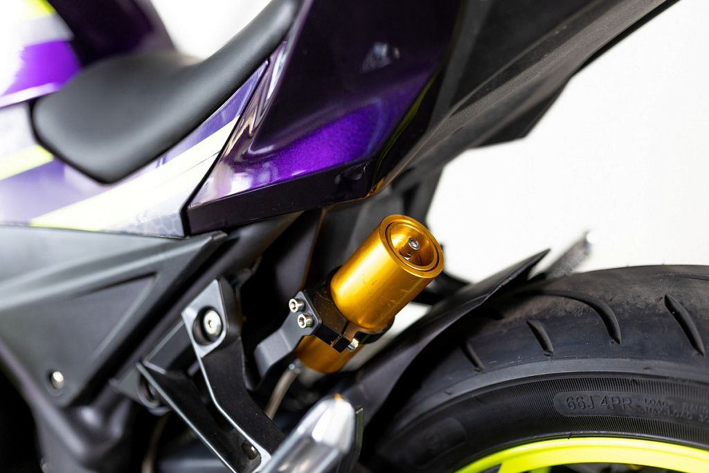 - Система подвески: Спереди классическая мотоциклетная вилка, сзади моноамортизатор с регулировкой жесткости