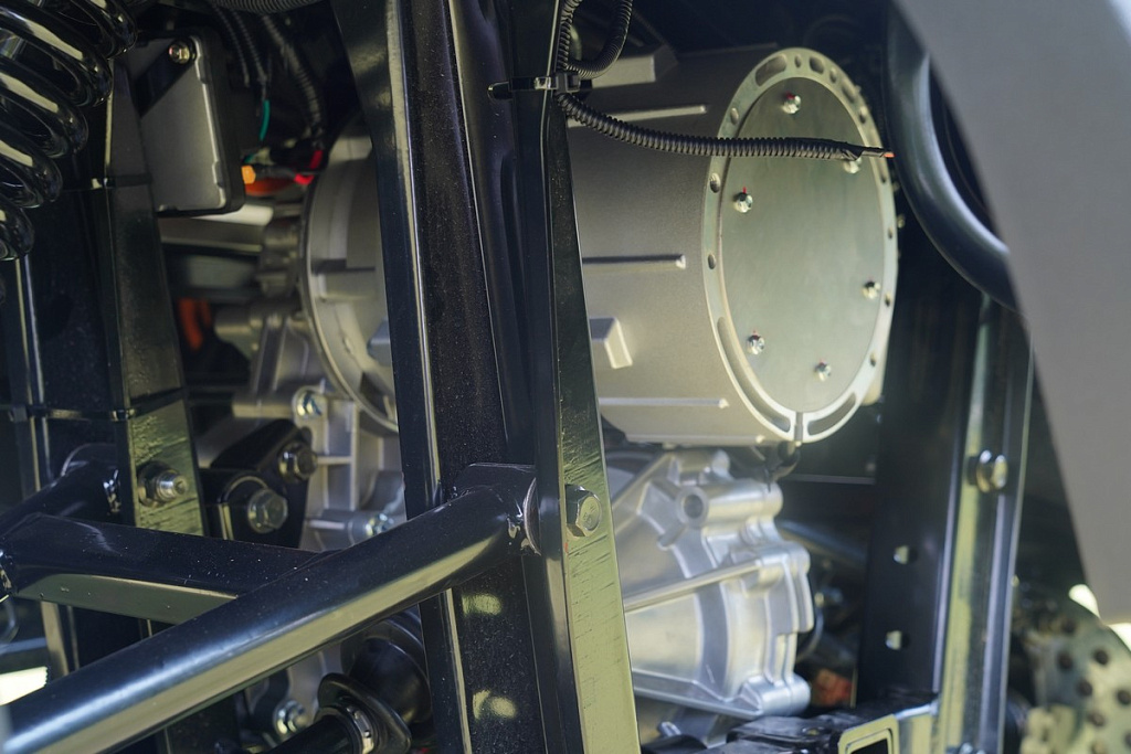 Двигатель соединен с редуктором заднего моста + возможность переключения между задним и полным приводом + блокировка дифференциала, раздаточная коробка на передний мост