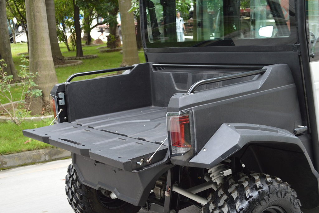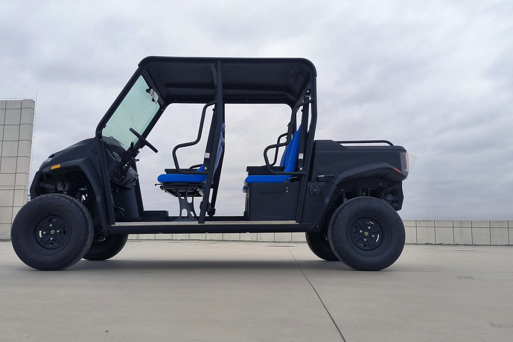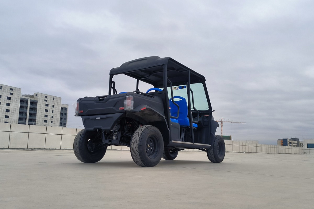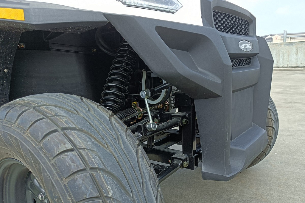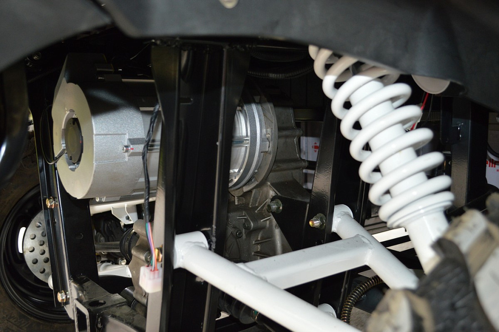 Двигатель соединён с задним редуктором, возможность переключения с 2WD на 4WD, блокировка дифференциала, раздаточная коробка на передней оси