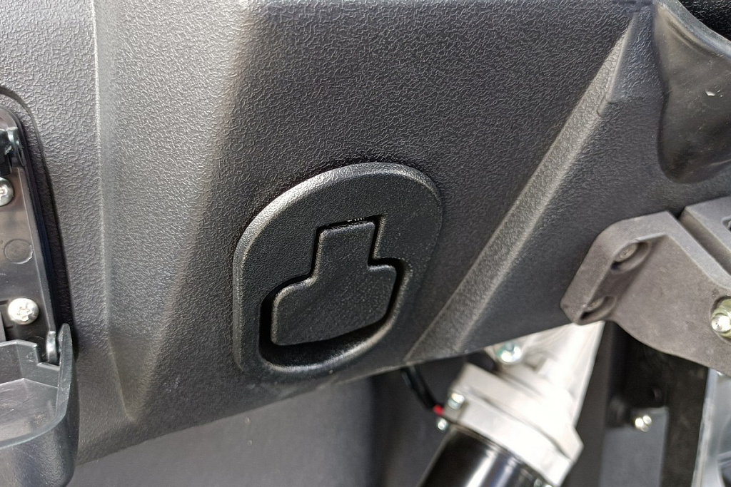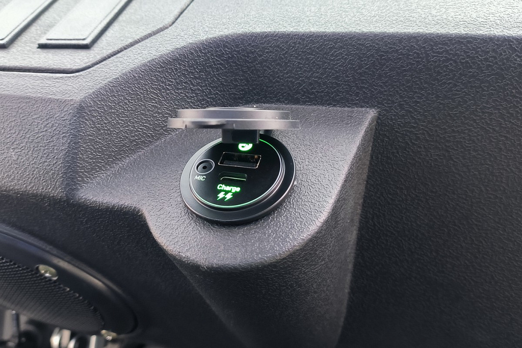Кнопка запуска двигателя, аудиосистема, 9-дюймовый мультимедийный дисплей, порты зарядки USB+Type-C, переключатели функций (режимы привода, блокировка дифференциала, полный привод, лебёдка, омыватель, аварийная сигнализация, электронный стояночный тормоз, переключение скоростей)