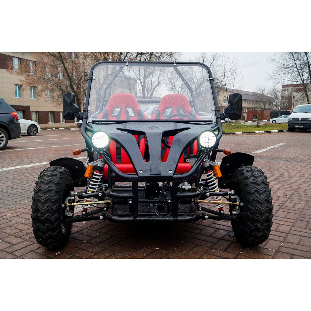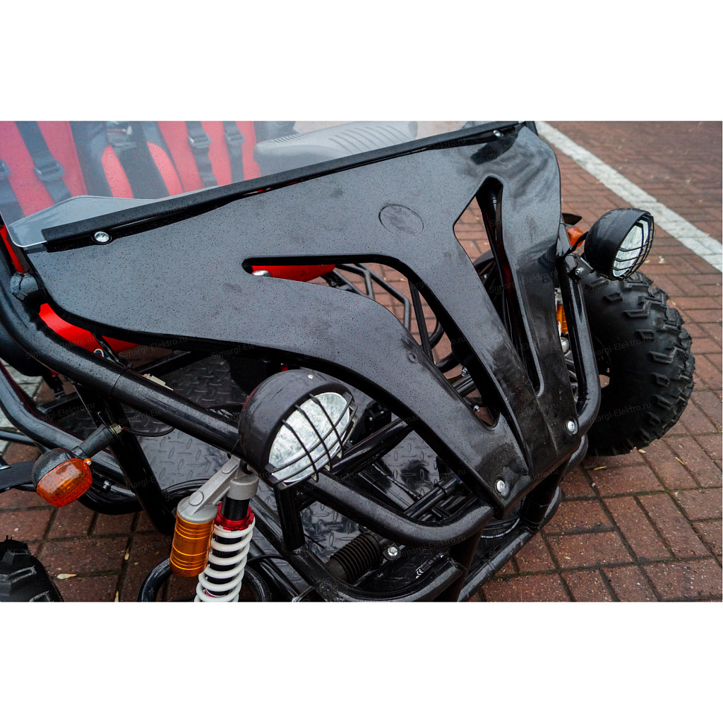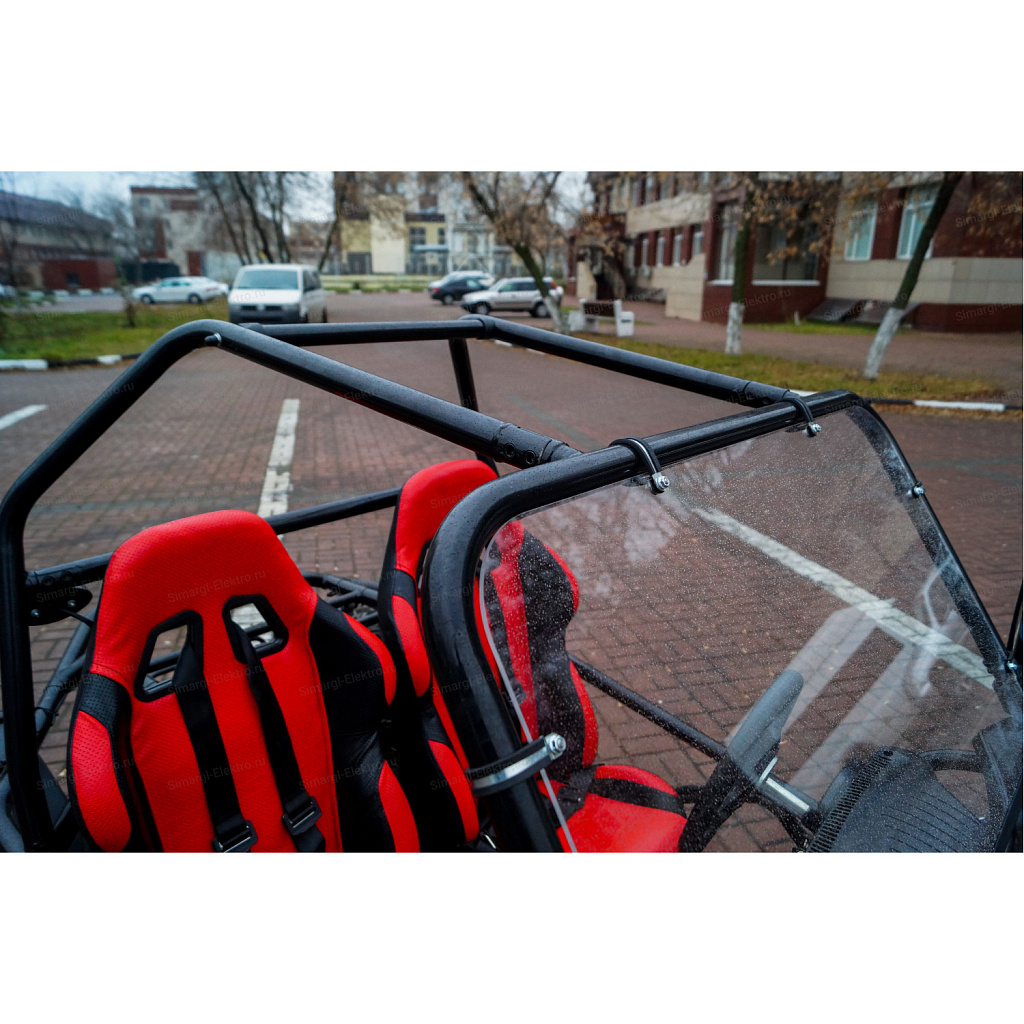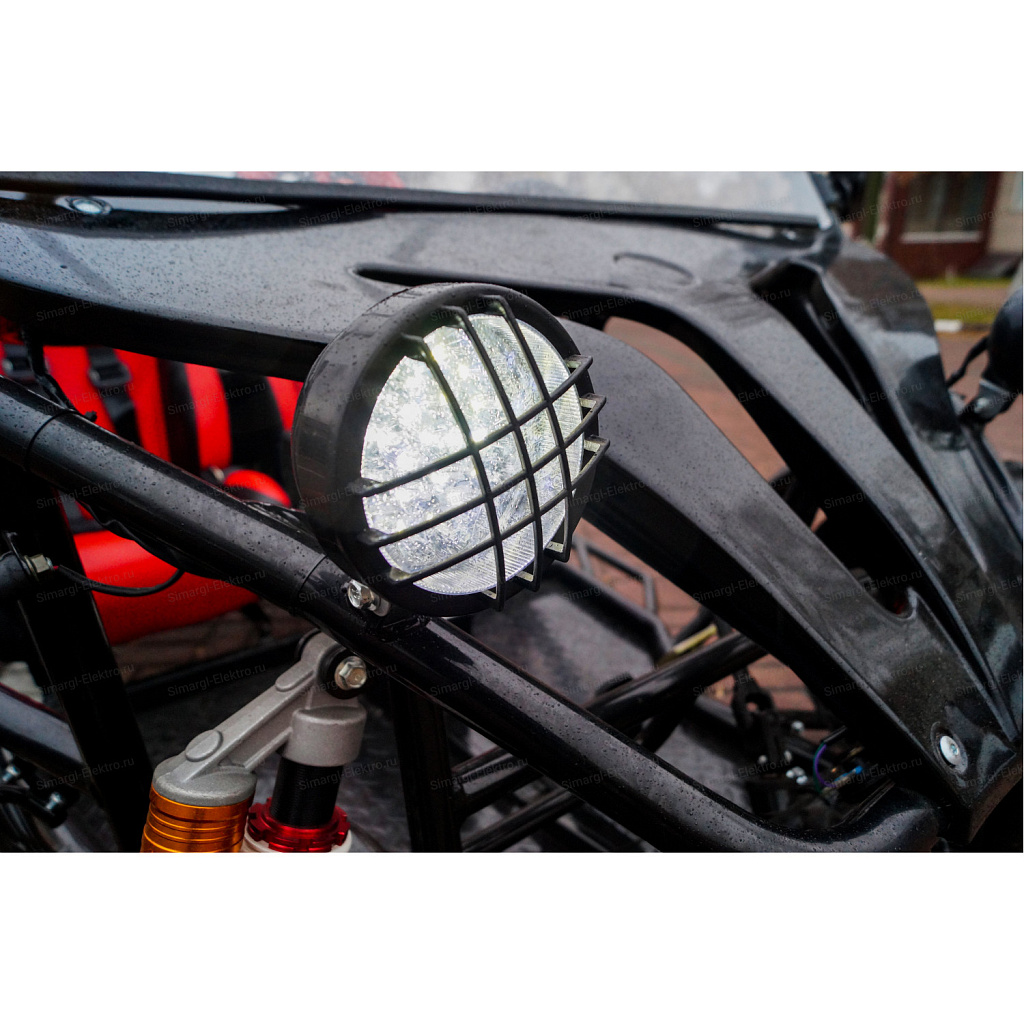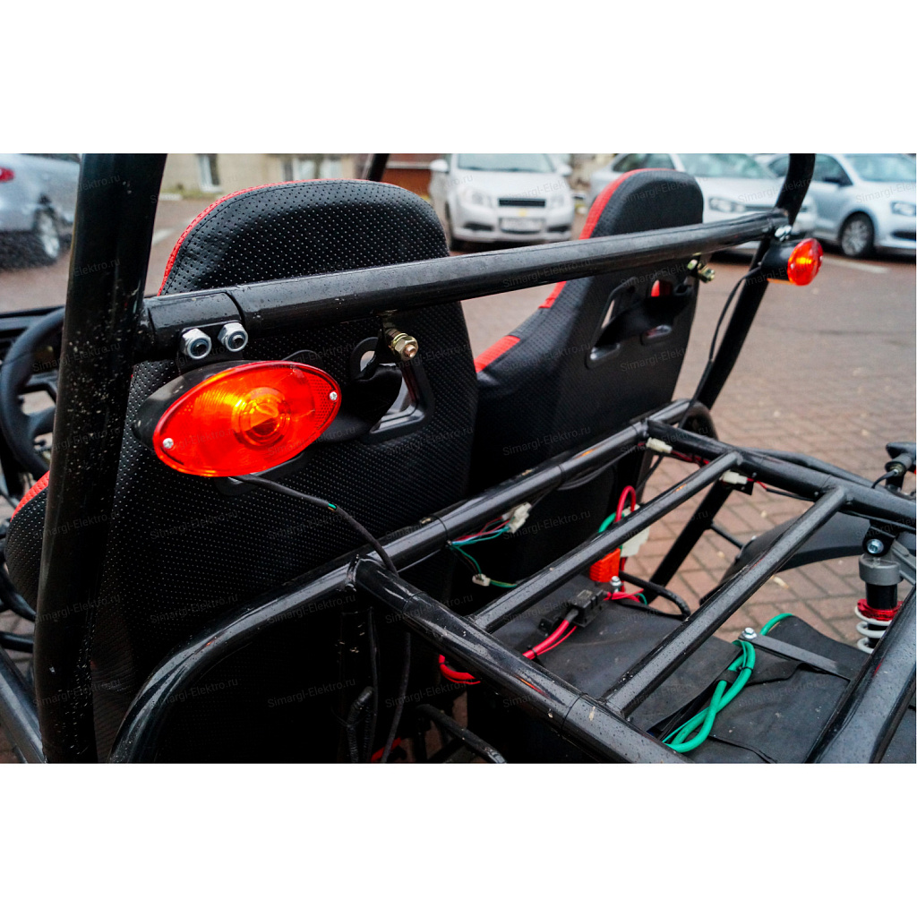 Скоростная, двухместная электро баги МС-259 станет непревзойденным товарище в гонках по легкому внедорожью. Центр тяжести на баги смещен на заднюю часть, что дает дополнительное сцепление с дорогой заднего привода. МС-259 оборудована удобными спортивными креслами. К сожалению место пилота не такое уж большое, максимальный рост пилота 175 см. Для комфортного передвижения, установлено ветровое стекло, так же по желанию его можно с легкостью снять. Баги оборудован передними, задними фарами, стоп сигналами, задними поворотниками, имеется так же гудок и режим аварийного сигнала.