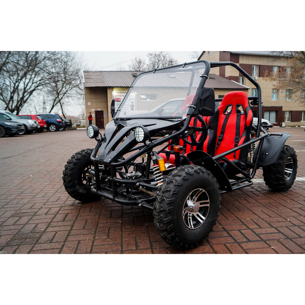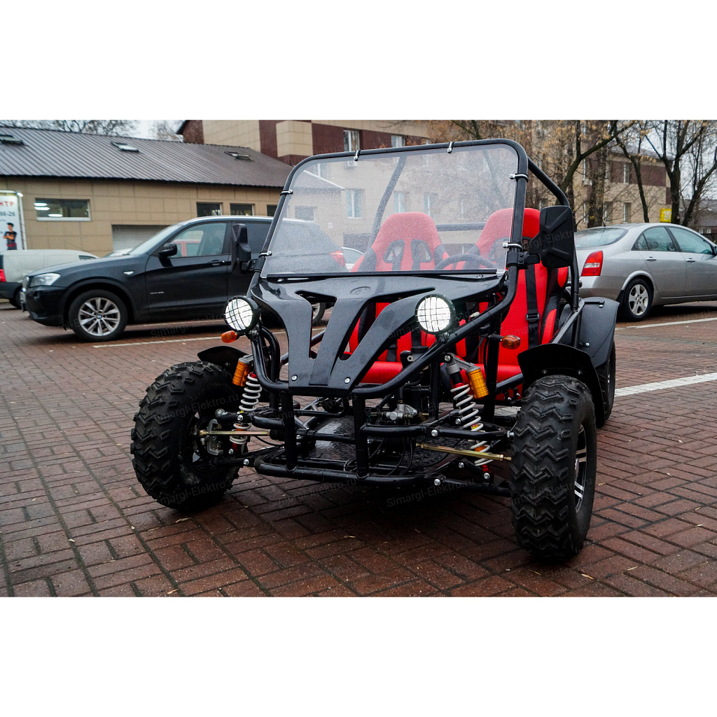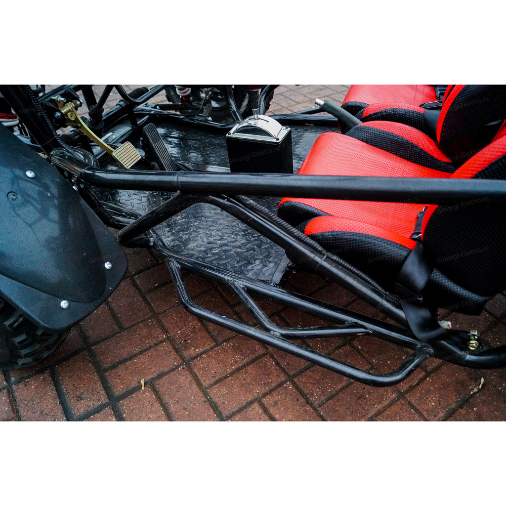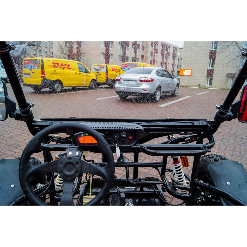Скоростная, двухместная электро баги МС-259 станет непревзойденным товарище в гонках по легкому внедорожью. Центр тяжести на баги смещен на заднюю часть, что дает дополнительное сцепление с дорогой заднего привода. МС-259 оборудована удобными спортивными креслами. К сожалению место пилота не такое уж большое, максимальный рост пилота 175 см. Для комфортного передвижения, установлено ветровое стекло, так же по желанию его можно с легкостью снять. Баги оборудован передними, задними фарами, стоп сигналами, задними поворотниками, имеется так же гудок и режим аварийного сигнала.
