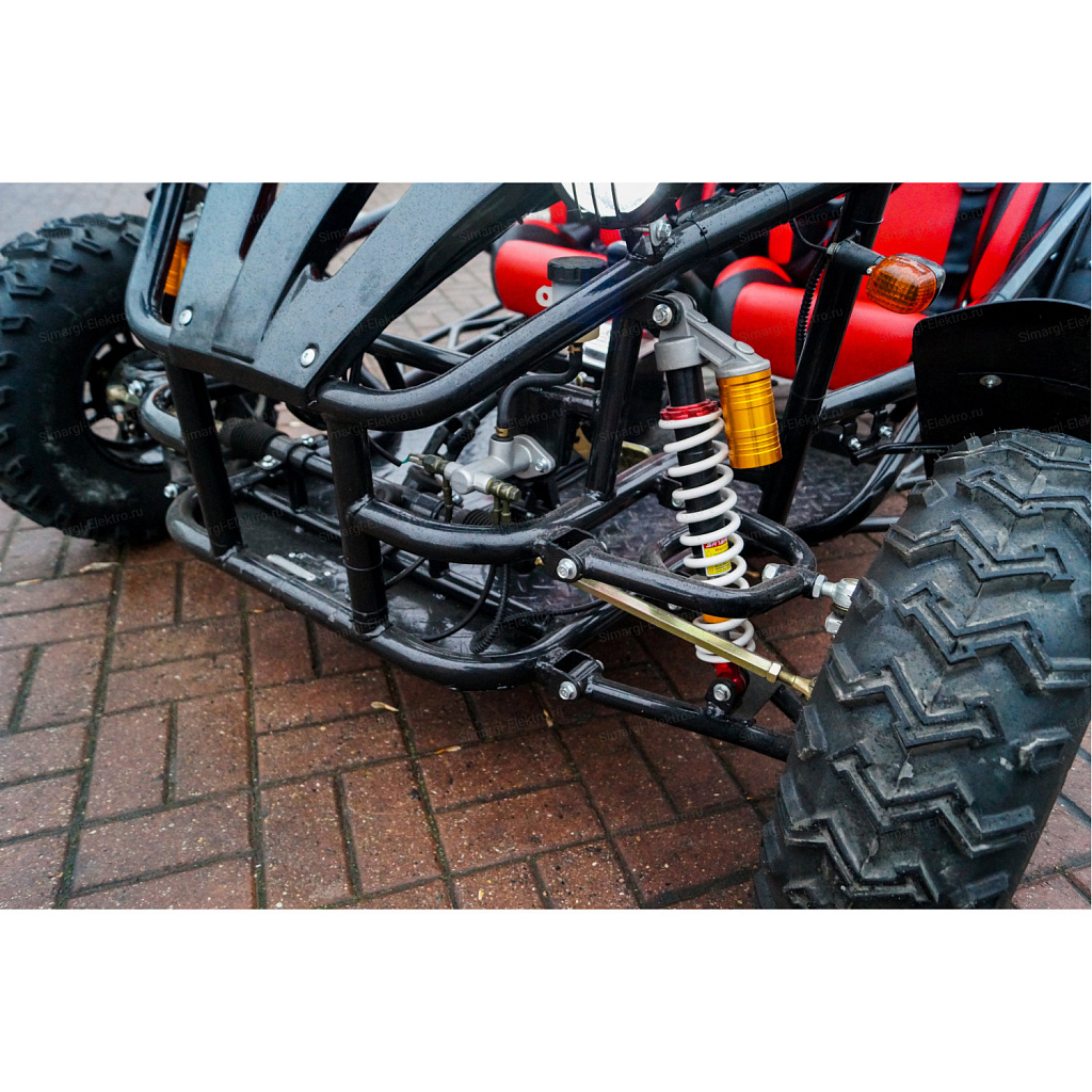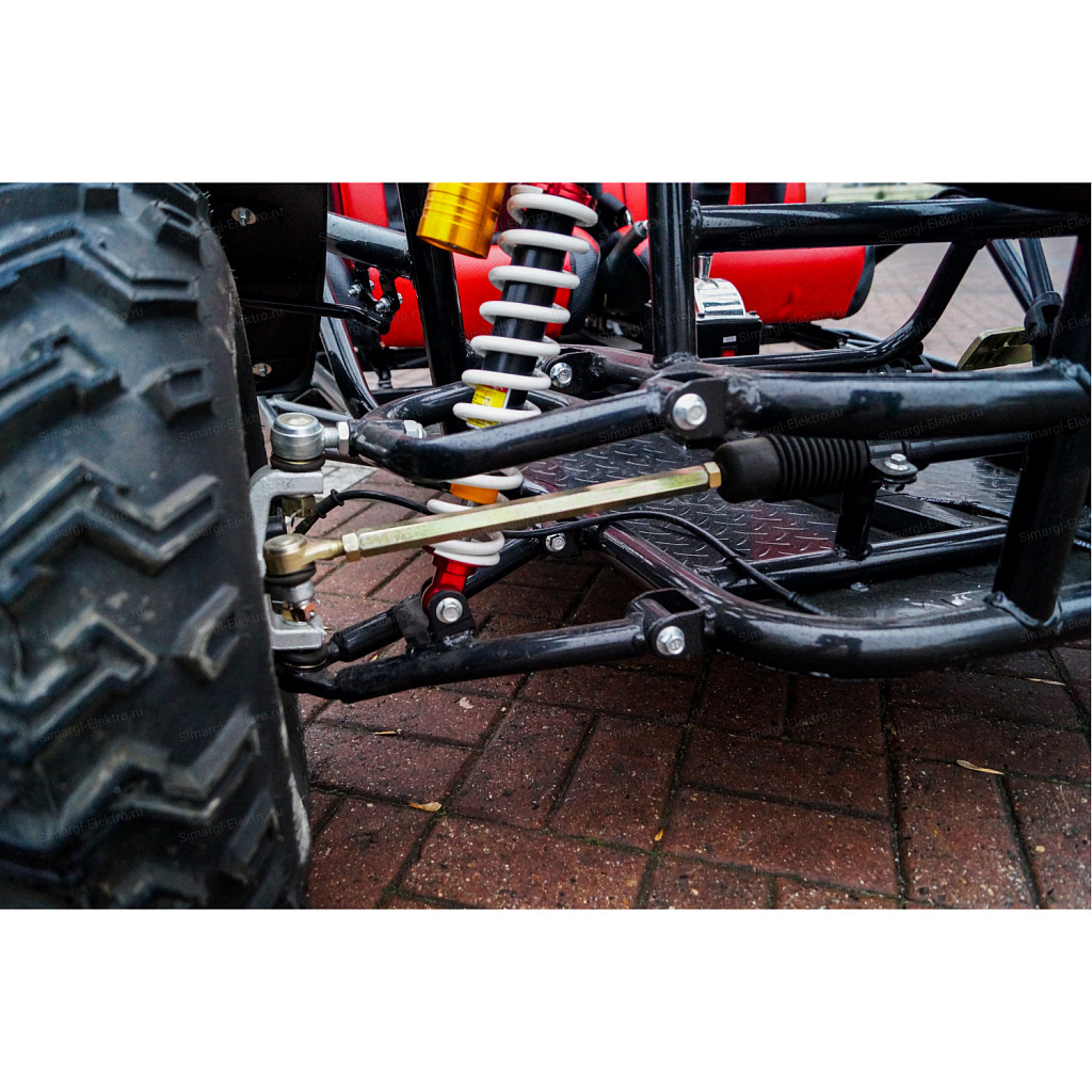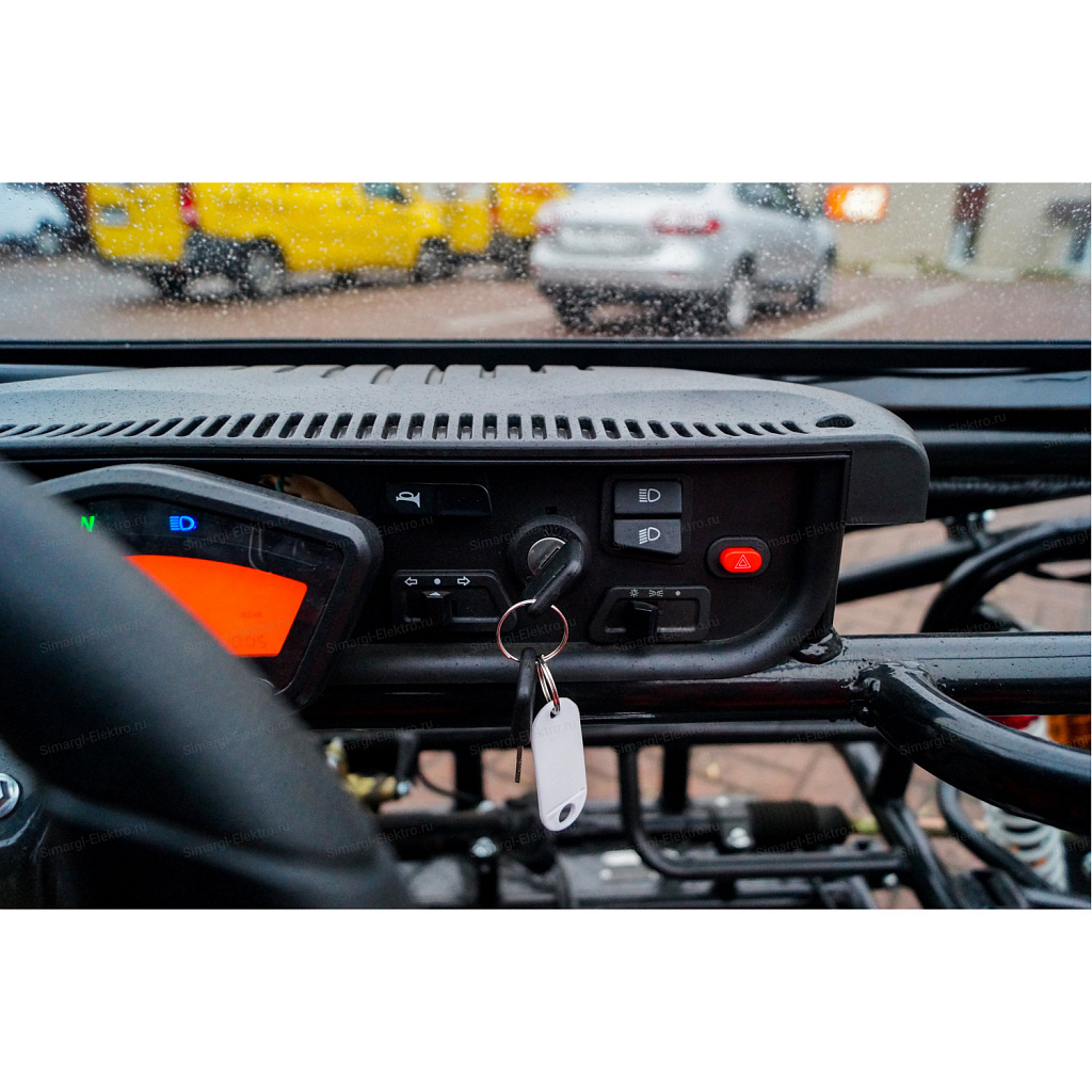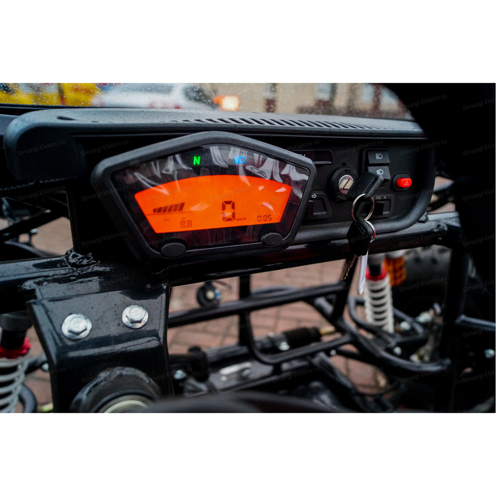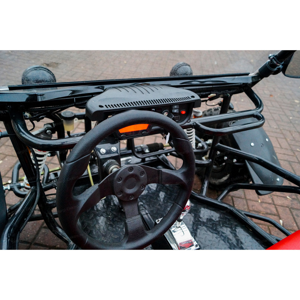 Скоростная, двухместная электро баги МС-259 станет непревзойденным товарище в гонках по легкому внедорожью. Центр тяжести на баги смещен на заднюю часть, что дает дополнительное сцепление с дорогой заднего привода. МС-259 оборудована удобными спортивными креслами. К сожалению место пилота не такое уж большое, максимальный рост пилота 175 см. Для комфортного передвижения, установлено ветровое стекло, так же по желанию его можно с легкостью снять. Баги оборудован передними, задними фарами, стоп сигналами, задними поворотниками, имеется так же гудок и режим аварийного сигнала.